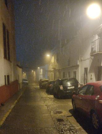 Se espera que durante la noche continúe la nevada y por la mañana se puedan ver los campos blancos. La localidad cumbreña está en la frontera extremeña y supera los 700 metros de altitud por lo que la nieve se extenderá de madrugada a otras muchas zonas de la Sierra del Viento y de Aracena.