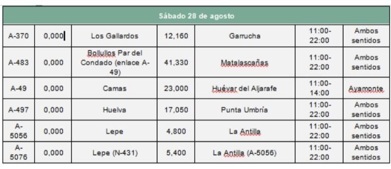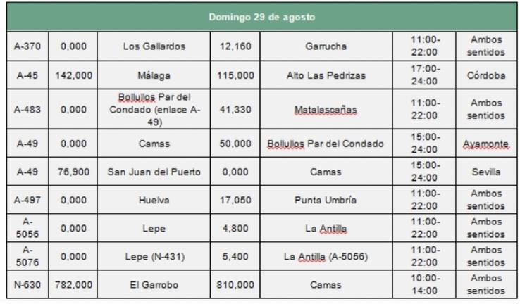 Las carreteras en las que se prevé que van a soportar mayor intensidad de tráfico son: A-92, A-92M, A-45, A-357, MA-20, A-7, AP-7, A-66, A-49, A-4, AP-4, N-4, así como la red secundaria para el acceso a municipios con playa y montaña. En cuanto a los horarios en los que se concentrará el tráfico serán entre las 15 y las 23 horas el viernes 27; entre las 8 y las 14 horas el sábado 28; y entre las 16 y las 24 horas el domingo 29.