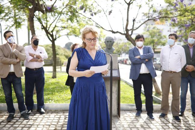 Felicidad Mendoza Ponce, la biógrafa y nieta de José Ponce Bernal, ha querido agradecer, en su nombre y en el de su madre –Felicidad Ponce Bueno- y toda su familia, el “justo homenaje” que le rinde el Ayuntamiento de Huelva a quien “fue tan injustamente tratado”; y que “por fin tiene un lugar en el que estar, en el que quedarse, desde donde pueda contemplar la ciudad que le vio nacer, a la que tanto amaba”. La periodista, doctora por la Facultad de Ciencias de la Información de la Universidad Complutense de Madrid, donde obtuvo, en febrero de 2016, un Sobresaliente Cum Laude con su tesis “Biografía personal, profesional, intelectual y política del periodista José Ponce Bernal (Huelva 1898 – Madrid 1940)”, dirigida por el doctor Agustín Martínez de las Heras, siendo merecedora del premio Extraordinario de Doctorado que otorga la UCM a las mejores tesis doctorales; ha explicado que José Ponce fue un periodista destacado del primer tercio del siglo XX, a través de cuya obra y trayectoria descubrió a “un gran intelectual que, como otros hombres de su generación, vieron en la política el lienzo en el que pintar una sociedad mejor. Y, como sabemos, la guerra civil y la represión posterior truncaron su vida y la de miles de hombres y mujeres que, sin duda, hubieran hecho grandes cosas por este país”.