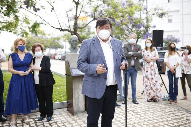 El alcalde de Huelva, Gabriel Cruz, ha presidido esta tarde un emotivo acto, en el que la ciudad, a través de su Ayuntamiento, ha rendido tributo a José Ponce Bernal, descubriendo un busto en su honor, obra del escultor Alberto Germán Franco, junto al Centro de la Comunicación ‘Jesús Hermida’. De esta forma, el primer edil ha dicho de Huelva hace justicia con “un hombre comprometido con su tiempo, que dio su vida por sus ideas, firme defensor de los derechos de los periodistas y del libre ejercicio de la profesión”.