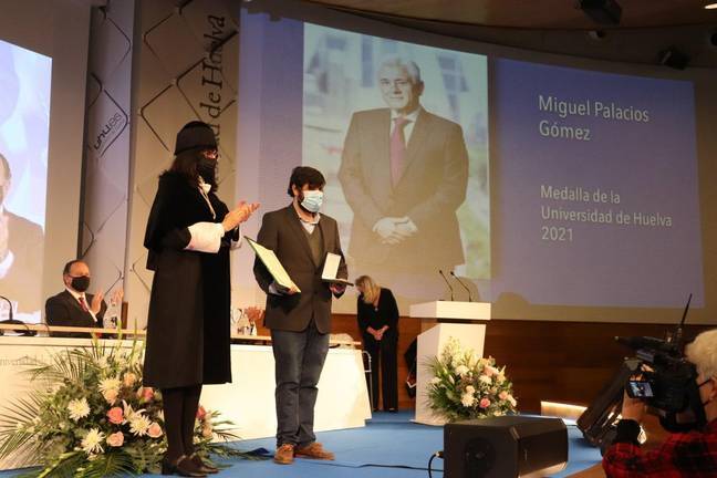 Por otro lado, Miguel Palacios ha participado por videoconferencia en el acto, y ha expresado su gratitud a la Universidad de Huelva y su Consejo Social, “cuya presidencia ha sido un enorme privilegio”. Igualmente, ha valorado la “sensibilidad” de la UHU para reconocer la labor y el compromiso de nuestros sanitarios durante la pandemia.