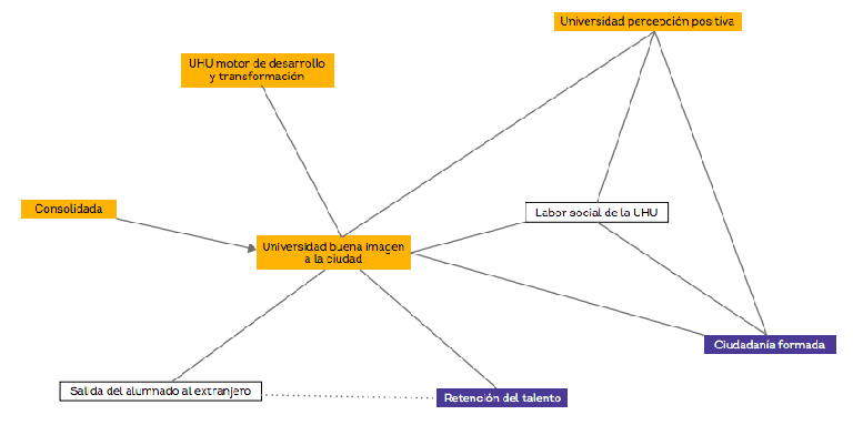Por ello, cuando se le pregunta a los agentes locales sobre la Onubense suelen definirla como "una Universidad pequeña, pero consolidada, y que ofrece calidad en su desempeño formativo e investigador y una buena imagen a la ciudad y la provincia". Se puede entender que la UHU hace más fuerte al territorio, entendido este como el conjunto de actores socioeconómicos vinculados al ámbito provincial, y especialmente a la ciudad de Huelva y su área metropolitana.