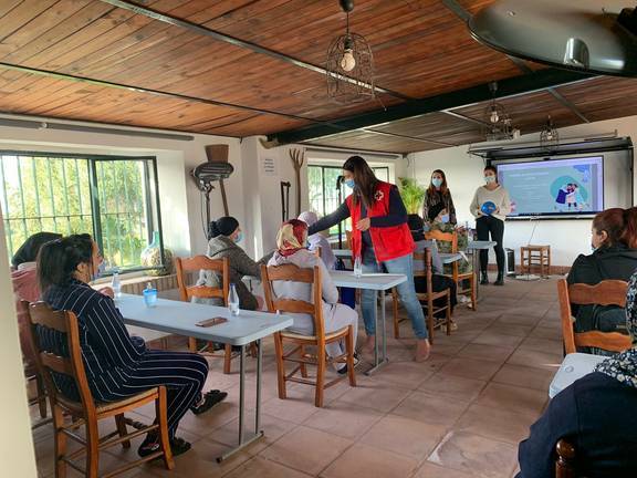 La colaboración se inició con la participación de un equipo multidisciplinar de Cruz Roja Huelva (psicólogas, abogada y mediadoras culturales) en las clases online de la asignatura de la UHU, para construir junto al alumnado un taller que favoreciera estrategias de promoción en salud generales y específicas de la Covid-19 en las mujeres contratadas en origen, a fin de que este material sirviera para garantizar una estancia lo más segura posible en las fincas, para lo que era imprescindible conseguir paralelamente que las personas participantes se convirtieran en agentes formadas de prevención.