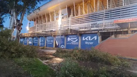 Anteriormente, la borrasca Bernard, que vino en octubre de 2023 a Huelva con fuertes lluvias y vientos huracanados ya había causado daños en las instalaciones del estadio.