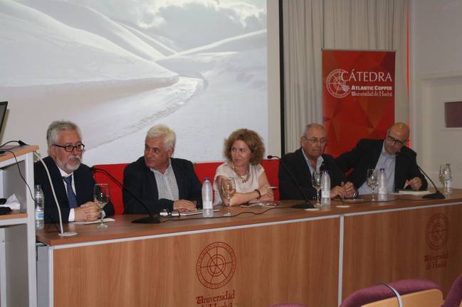 A la presentación del curso han acudido la doctora Regla Fernández, vicerrectora de Estudios e Internacionalización; el director general de Metalurgia de Atlantic Copper, Miguel Palacios; el doctor Ignacio Moreno-Ventas, director de la Cátedra Atlantic Copper; Guillermo Ríos, director de Innovación y Tecnología de Atlantic Copper y Antonio de la Vega, director general de la Fundación Atlantic Copper.