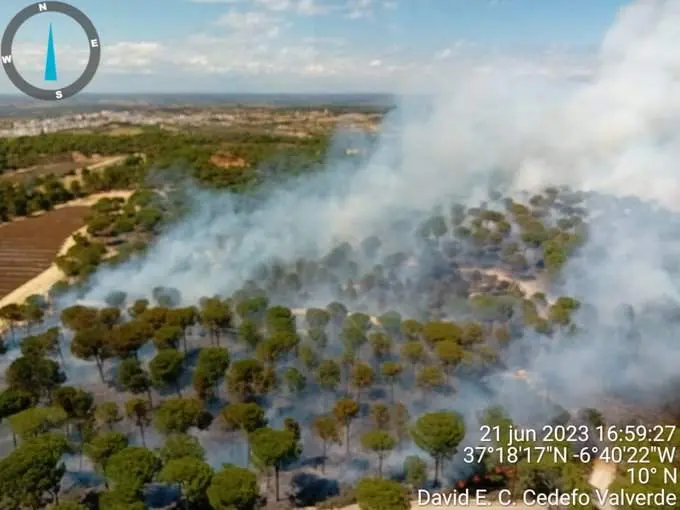Un nuevo incendio se ha declarado esta tarde en el paraje del Corchito, en Bonares, en el entorno de Doñana y muy cerca de la localidad. Hasta el lugar, el Infoca ha desplazado un gran número de efectivos ante las previsiones de viento y aumento de temperaturas.