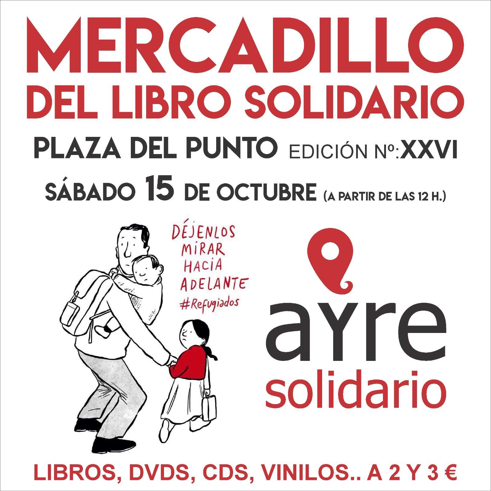 Para la puesta en marcha del Mercadillo solidario, Ayre Solidario recaba donaciones de libros usados y DVDs, tanto de particulares como instituciones, que el sábado se pondrán a la venta a precios muy baratos. A todos a ellos las ONGs agradecen sus aportaciones.