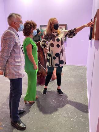 La presidenta de la Diputación de Huelva, María Eugenia Limón, ha inaugurado el stand del proyecto 'Feminario, Mujeres y narraciones estéticas genéricas', que exhibe la obra de siete creadoras onubenses en ARCOMadrid 2021.