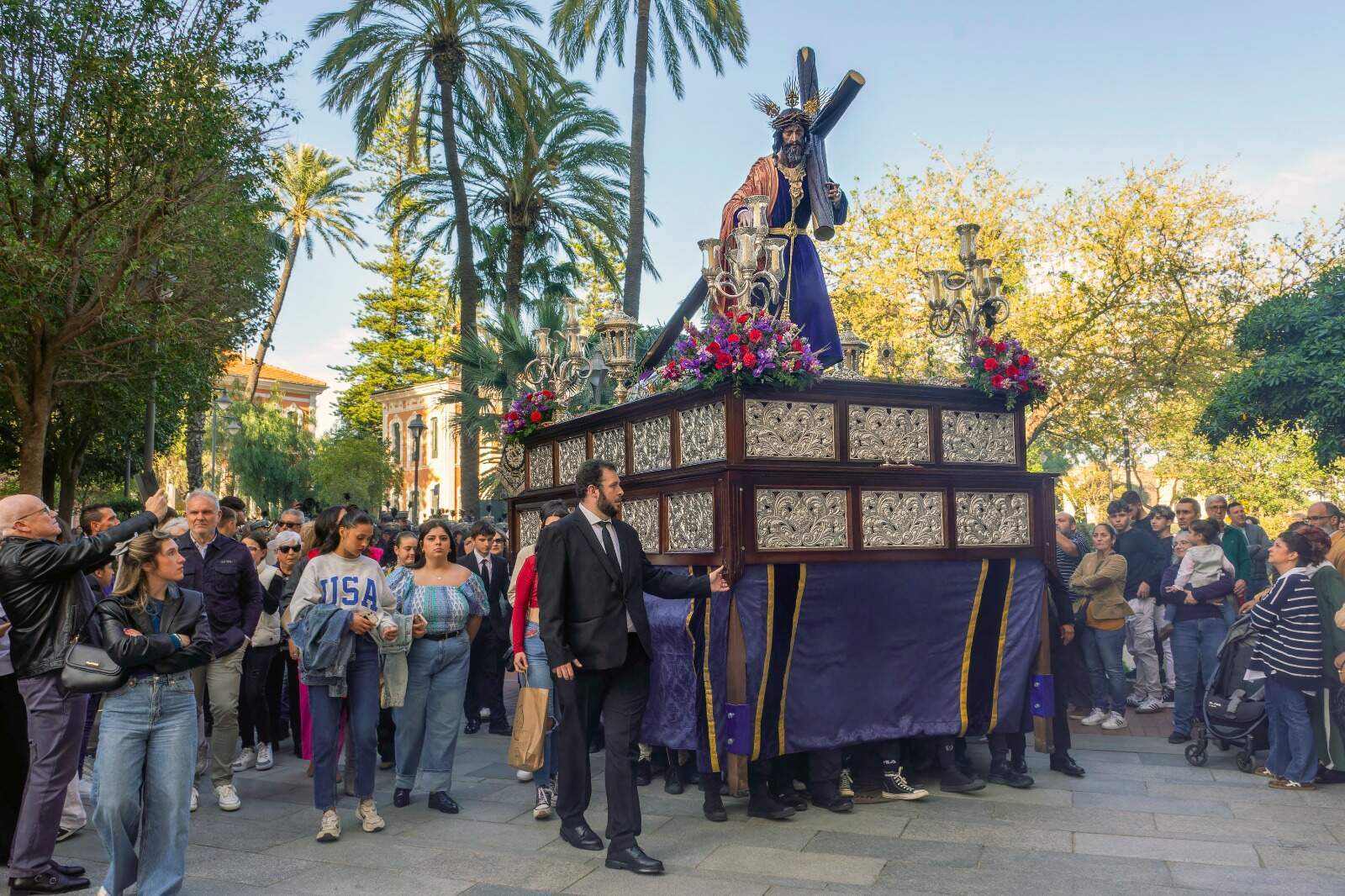 Desde la creación de la Asociación, la imagen del Cristo ha desfilado procesionalmente en tres ocasiones. La última de ellas a las seis de la tarde del pasado 3 de abril desde su Oratorio, recorriendo su itinerario por las calles Escultora Miss Whitney, Aviador Ramón Franco, Alameda Sundheim, Plaza del Punto, Alonso Sánchez, Plaza Niña, Esperanza Coronada, la Paz, Rábida, Murillo, Vázquez López, Plaza de las Monjas, Avda. Martín Alonso Pinzón, Alameda Sundheim, Luis Braile y Escultora Whitney, con entrada en su Oratorio a las once de la noche.