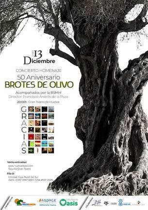 Dentro de la programación cultural impulsada por el Ayuntamiento de Huelva para este mes de diciembre, la capital onubense ofrece para esta semana una variada oferta que permitirá al público de la capital disfrutar en primer lugar de un concierto para celebrar el cincuenta aniversario de Brotes de Olivo, ocasión especial para la que la Banda Sinfónica Municipal se ha puesto a disposición de esta formación, habiéndose colgado ya el cartel de ‘completo’ para este espectáculo programado por el Ayuntamiento. Destacan también en la oferta cultural de esta semana el concierto de hip hop de la banda onubense Punto y final, y la representación teatral de ‘Los Asquerosos’, una obra de primer nivel, que reúne a actores de la talla de Miguel Rellán y Secun de la Rosa.