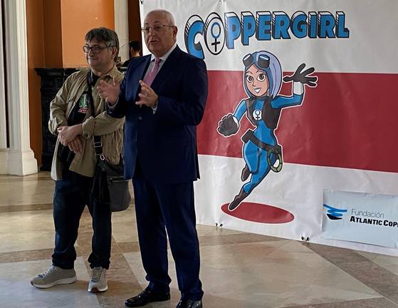 El objetivo de la superheroína Copper Girl, que ha sido presentada en sociedad este viernes en el Salón Internacional del Cómic de Huelva, es divulgar de forma “muy didáctica, la importancia que tienen los distintos tesoros que albergamos en casa y que podrían ser aprovechados para otros usos industriales”, según ha declarado Antonio de la Vega, director general de la Fundación. “Se trata de hacer pedagogía sobre el modelo económico circular por el que apostamos en Atlantic Copper”, ha subrayado.