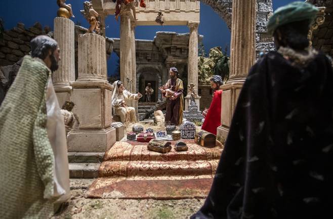 Se trata de una Belén de estilo hebreo, con una superficie de 48 metros cuadrados y unas 60 figuras, articuladas de candelero de 40 centímetros, realizadas en el taller artesanías Garduño, y adornados con múltiples complementos de origen napolitano, de construcciones realizadas en porexpan y madera.