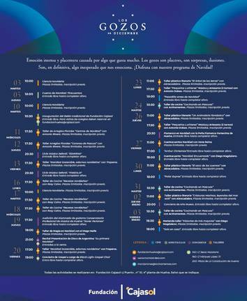Ciencia navideña, cuentos de navidad, talleres de magia, de cocina y adornos navideños, música y artesanía, entre otras actividades, estarán disponibles en una programación que se puede consultar íntegramente en www.fundacioncajasol.com.