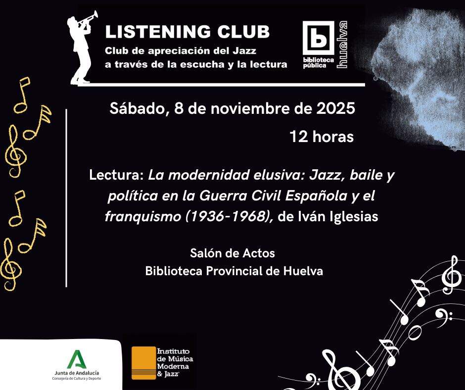 La Biblioteca Provincial de Huelva acoge este sábado, 8 de noviembre, una nueva edición del Listening Club, una iniciativa que combina lectura y música para acercar al público al universo del jazz desde una perspectiva diferente y participativa.