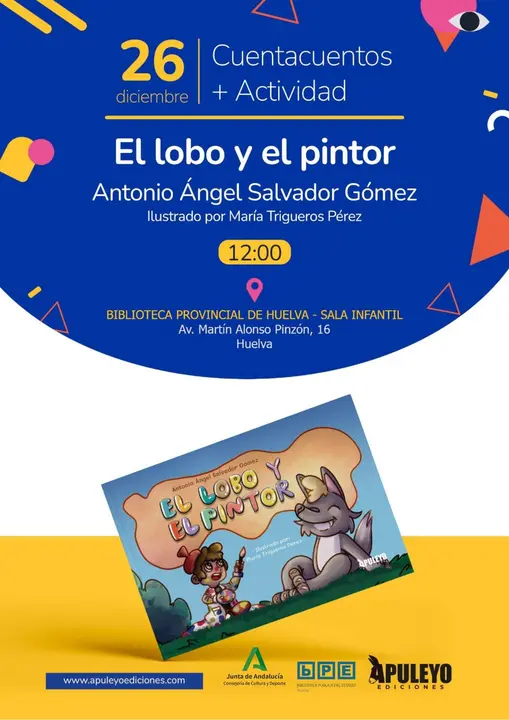 La Biblioteca Provincial de Huelva organiza una actividad muy especial dirigida al público infantil y familiar con la presentación del álbum ilustrado “El lobo y el pintor”, de la editorial Apuleyo Ediciones. La cita tendrá lugar el viernes 26 de diciembre a las 12:00 horas en la Sala Infantil del centro.