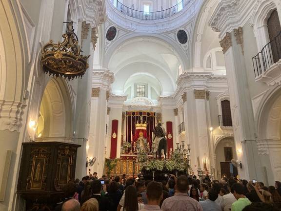 El regreso a la Parroquia Mayor de San Pedro se producirá por Gran Vía, Plaza de las Monjas, Tres de Agosto, Plaza Quintero Báez, La Fuente, Plaza de San Pedro, J. A. Mora y Porche De San Pedro. La entrada a templo está prevista a las 21:45 horas.