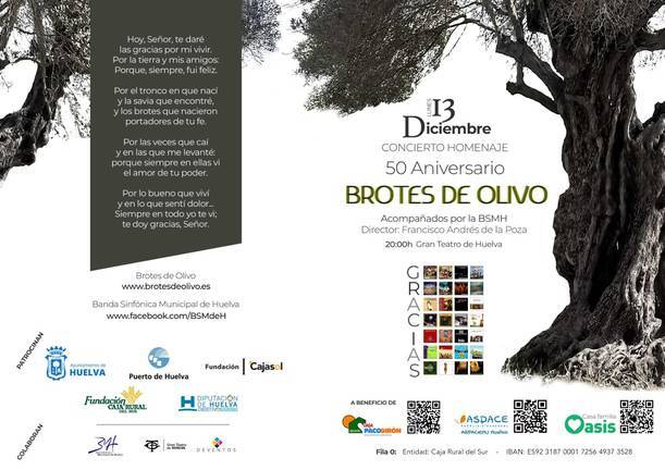 Tras varios meses de ensayo, un auditorio repleto podrá deleitarse con una selección de los temas más representativos del reconocido grupo de música católica en un concierto especial con el que Brotes de Olivo quiere agradecer a Dios y a las personas e instituciones que les han acompañado a lo largo de su trayectoria, todo lo vivido en estos cincuenta años.