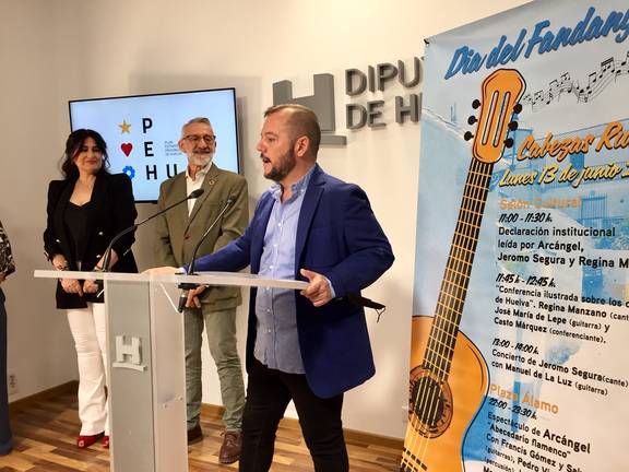 García, acompañado por los artistas Jeromo Segura y Regina Manzano, ha explicado que el programa tendrá el mismo formato que el año pasado, cuando se celebró por primera vez en Alosno. Por la mañana, en el Salón Cultural de Cabezas Rubias, se dará lectura la Declaración Institucional por parte de Arcángel, Jeromo Segura y Regina Manzano.