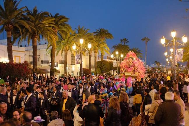 La cabalgata, que concluyó a la salida del Paseo de La Ribera, contó con la participación del cuarteto, chirigotas, comparsas y coros que han tomado parte en el concurso local de Carnaval, así como de las cortes infantil y juvenil y de numerosos grupos de disfraces que llenaron de color este domingo en la Puerta de España.