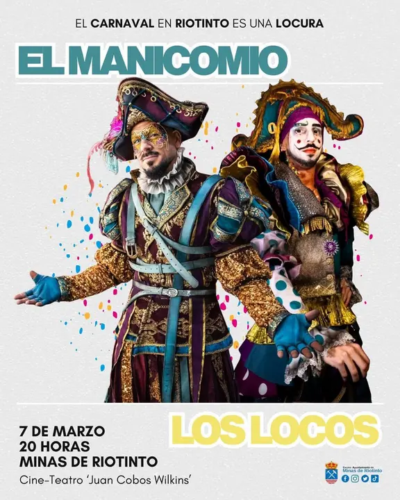 El Carnaval volverá a convertirse en una auténtica explosión de coplas y humor en Minas de Riotinto el próximo sábado 7 de marzo, con la llegada de las comparsas El Manicomio y Los Locos, dos formaciones muy esperadas por los aficionados.
