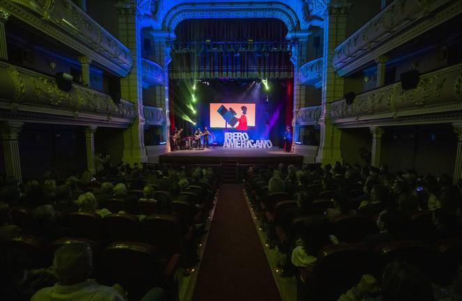 En un flamante Gran Teatro, la gala de apertura ha comenzado con la música de la banda John Conde y con un mensaje de celebración. “Más que nunca, es necesario recuperar una experiencia única: ver cine en pantalla grande. Este 2021, el Festival de Huelva recupera la presencialidad. Aunque sigamos manteniendo la prudencia hasta llegar a una normalidad plena, debemos celebrar el cine y la cultura”, ha asegurado el presentador, antes de agradecer su apoyo a los espectadores, a los patronos, al colaborador oficial -la Fundación Atlantic Copper-, así como a todas entidades colaboradoras y los profesionales que acompañan al Iberoamericano en esta edición.