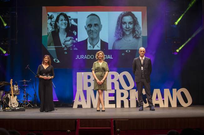 Tras hacer un repaso por esta programación, han subido al escenario las tres personas que asumen la mayor responsabilidad en esta semana de cine, los miembros del Jurado Oficial. Ha tomado la palabra su presidenta, la productora chilena Marcela Santibáñez, en nombre también de sus compañeros, la periodista española especializada en cine y series internacionales Alicia García Arribas y el director de cineEScultura, Festival Hispánico de Cine y Cultura de Ratisbona (Alemania), Pedro Álvarez Olañeta. Santibáñez ha asegurado que le llena de “orgullo” esta tarea y ha garantizado que los tres miembros del jurado van a “complementarse” para tomar la mejor decisión. La productora chilena ha admitido que elegir a los ganadores es “una enorme responsabilidad” y ha confesado que poder hacerlo “en vivo” es una gran “alegría”.