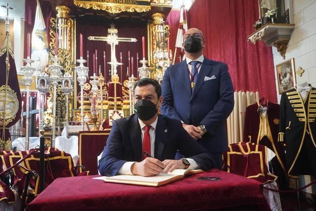 Moreno ha visitado en la localidad gaditana de San Fernando la Hermandad de los Afligidos (Estudiantes), la Archicofradía de Medinaceli y María Santísima de la Trinidad y la Hermandad del Ecce-Homo. En cada una de ellas, el presidente andaluz ha firmado en el Libro de Honor.
