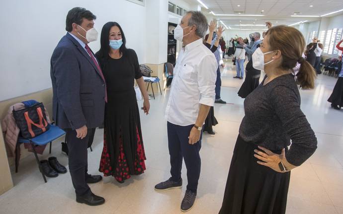 El alcalde de Huelva, Gabriel Cruz, junto a la concejala de Participación Ciudadana y Deportes, María Teresa Flores, han visitado los talleres de ‘Cultura en los Barrios’ que se están desarrollando en el Centro Social de Los Desniveles. Fotografía, Guitarra, Baile Flamenco y Coros son algunas de las disciplinas que se están impartiendo en esta sede de la barriada de La Orden. Un espacio donde, como en el resto de asociaciones y entidades de la ciudad, las clases se han retomado este curso con carácter presencial.