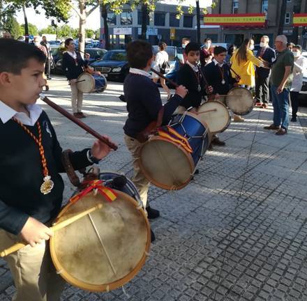 Durante la mañana de hoy, escolares del colegio Santo Ángel de Huelva han dado la bienvenida a la Hermandad de Emigrantes, acompañados por una representación de la escuela de tamborileros, y han hecho entrega a su junta de gobierno de un ramo de flores para que luzca a los pies de la Concha Peregrina.