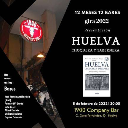 El libro ‘Huelva choquera y tabernera. La de las mil y una noches’ (Editorial Niebla), de José Ramón Andikoetxea (Andi), será presentado el próximo viernes 11 de febrero, a las 20.00 horas, en la sala bar 1900 de Huelva, situada en la calle Garci Fernández de la capital onubense.
