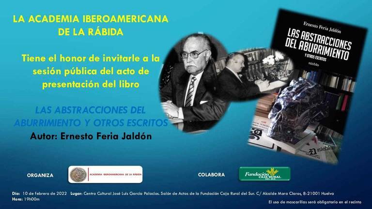 El Centro Cultural José Luis García Palacios de la Fundación Caja Rural del Sur acogerá el próximo jueves, 10 de febrero, la presentación del libro ‘Las abstracciones del aburrimiento y otros escritos’ (Editorial Niebla, 2022), una obra del reconocido filósofo y ensayista onubense Ernesto Feria Jaldón que ve la luz coincidiendo con el centenario de su nacimiento.