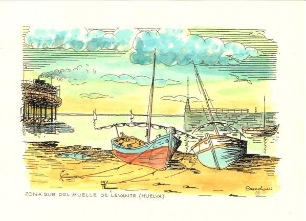 El artista José Bacedoni Bravo expone de manera permanente y cambiante más de 200 dibujos de Huelva y provincia en la capital para el disfrute de visitantes, y también su posible posterior venta.