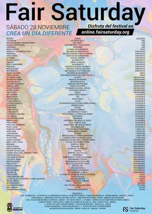 La Fundación Fair Saturday pone en marcha la IV edición de su festival en Huelva que tendrá lugar este próximo sábado 28 de noviembre, intentando –como cada año desde su nacimiento en Bilbao en 2014– provocar una fuerte concienciación sobre el valor que tiene la cultura el día posterior al Black Friday, el día más consumista del año. Desde su nacimiento, Huelva es una de las ciudades impulsoras de este festival.