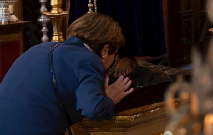 En el besapié de la Victoria, el viernes pasado, muchos de los feligreses que acudieron a rendir culto a la Virgen optaron por la reverencia en vez de besar la imagen, según señala el hermano mayor, Luis Parrales.