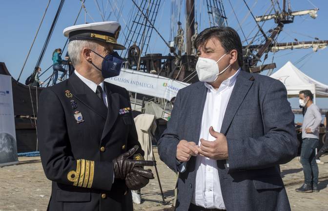 Asimismo, el presidente de la Fundación Nao Victoria, José Fernández de Cabo y el primer oficial del Galeón Andalucía, director de la Gira Exploraterra 2022, Rafael Yáñez han hecho un llamamiento a los onubenses para que apoyen esta iniciativa visitando las naves.