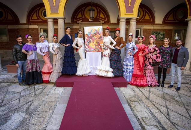 La presentación de ‘Huelva Flamenca 2020’, que ha incluido un pequeño desfile para mostrar unas pinceladas de lo que se podrá ver en esta décima edición, ha arrancado con el descubrimiento del cartel, obra del artista ayamontino Simón López, al que Adrián Fernández, representando a ADOMOF, ha agradecido una pintura “en la que la mujer es protagonista, al igual que ocurre en la moda flamenca y Huelva está presente a través de la luz de nuestros atardeceres y la presencia de una carabela”.