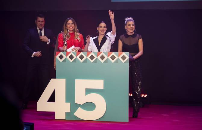 Después de presentar los diferentes jurados que se encargarán de elegir a los ganadores de las demás secciones competitivas, volvió la música de Rocío Márquez, que interpretó el tema 'Trago amargo', como antesala de uno de los momentos más especiales de la noche: la entrega del Premio Luz, patrocinado por la Fundación Atlantic Copper, a Leticia Dolera. La directora y actriz española recogió el galardón de manos de Ginesta Guindal, directora, junto a la propia Dolera y Elena Martín Gimeno, de la serie 'Vida Perfecta', así como de las actrices Nuria Gago y Ruth Llopis.