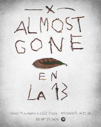 De origen andaluz, Almost Gone es un proyecto compuesto por dos músicos inquietos, ambos movidos por una firme pasión hacia la música improvisada que trasciende de todo estándar para expresarse sincera y libremente.