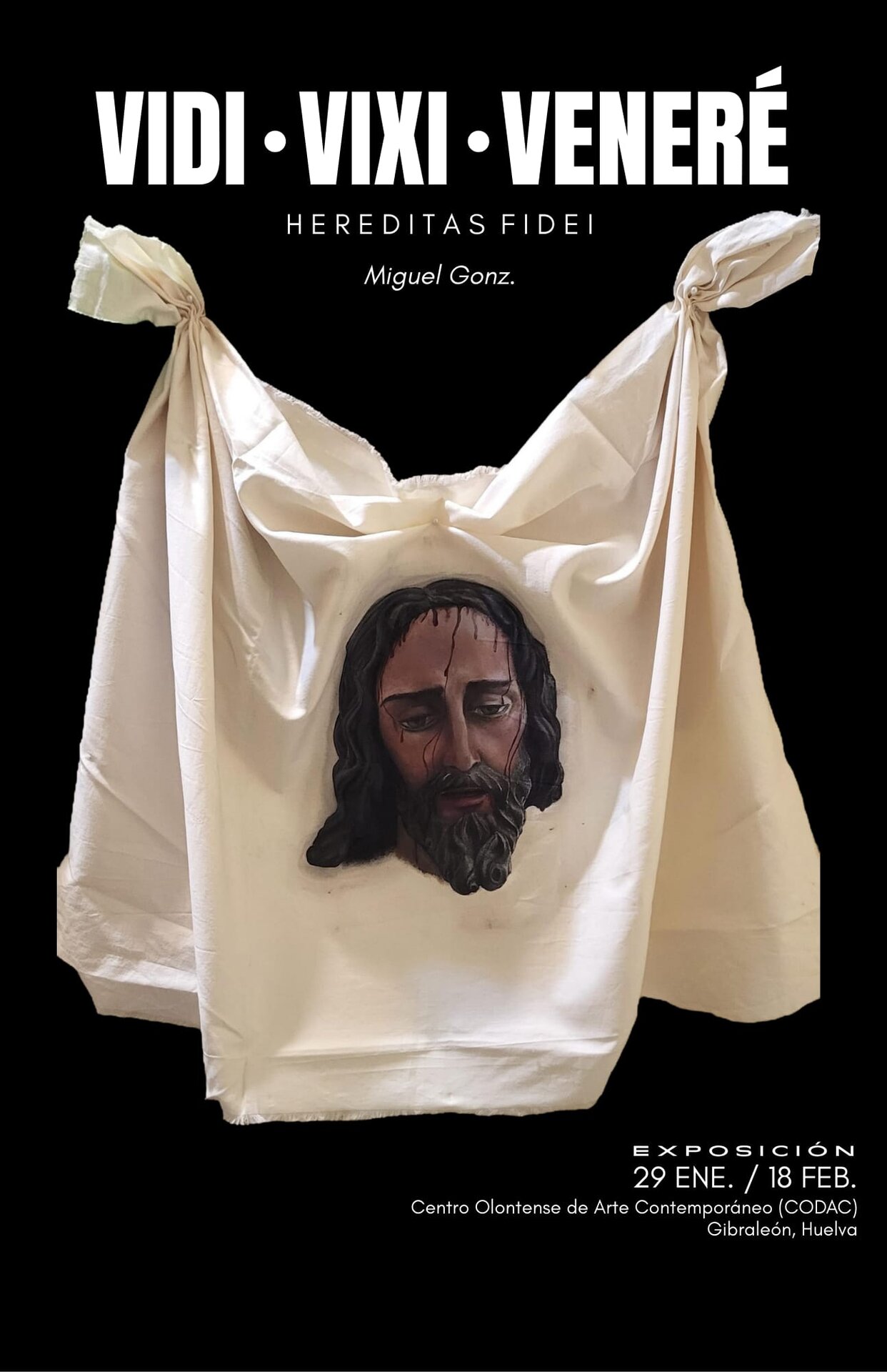 Bajo el título Vidi, Vixi, Veneré (Hereditas Fidei), la exposición propone un recorrido personal y artístico vinculado a la fe y a la mirada. La muestra se estructura en tres etapas: la contemplación infantil de la imaginería como forma (VIDI), la vivencia dentro del mundo de las hermandades (VIXI) y una veneración consciente y madura (VENERÉ).