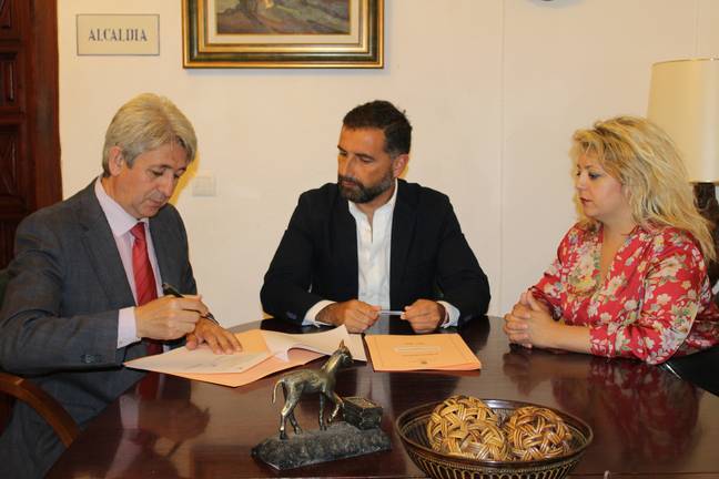 El alcalde de Moguer, Gustavo Cuéllar, y el representante de la Fundación Cepsa, José Antonio Agüera, suscribieron el convenio de colaboración por el que ambas entidades patrocinarán la edición de un CD conmemorativo en el que se recopilarán los grandes éxitos del autor moguereño que fueron interpretados por los mejores artistas de la historia de la copla, y que siguen hoy tan vigentes como cuando fueron escritos por Xandro Valerio.