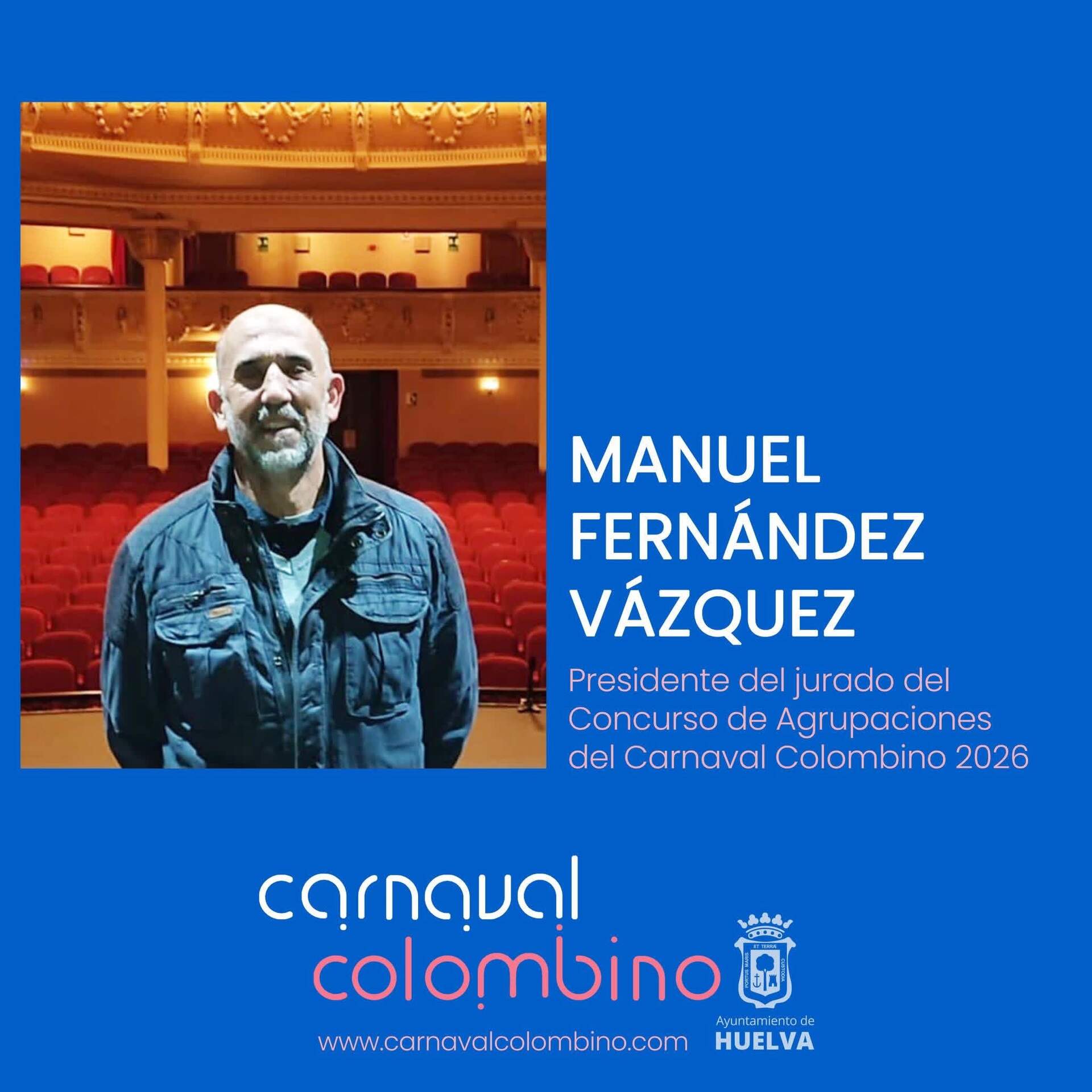 El Carnaval Colombino 2026 ya tiene presidente del jurado para su Concurso de Agrupaciones: Manuel Fernández Vázquez, una de las figuras más queridas y respetadas del carnaval onubense. Autor, músico y pregonero de la fiesta en 2008, Fernández Vázquez es considerado un referente indiscutible del Carnaval de Huelva, donde su nombre se asocia a talento, compromiso y pasión por la cultura popular.