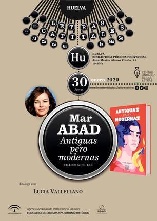 La Consejería de Cultura y Patrimonio Histórico, a través de la Agencia Andaluza de Instituciones Culturales, organiza este jueves en Huelva la presentación del nuevo libro de Mar Abad ‘Antiguas pero modernas’, dentro del ciclo literario ‘Letras Capitales’ que desarrolla el Centro Andaluz de las Letras. El encuentro literario, que tendrá lugar en la Biblioteca Pública Provincial a las 19:30, contará con la presencia de la periodista Lucia Vallellano.