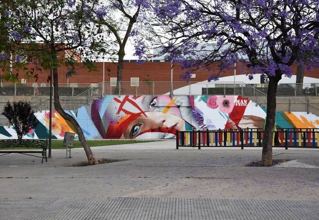 Con el espectacular gratifi realizado en el parque de la calle Almonte, junto al centro de deportes, el colegio Zenobia y el instituto Juan Ramón Jiménez, serán muchos los moguereños y visitantes de todas las edades los que puedan disfrutar de esta hermosa obra que llena de color y vida un espacio público que ahora irradia también arte y cultura.