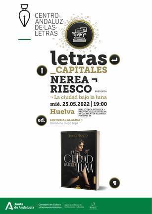 El Centro Andaluz de las Letras de la Consejería de Cultura y Patrimonio Histórico presenta mañana miércoles día 25 en la Biblioteca Pública Provincial de Huelva la nueva novela de Nerea Riesco ‘La ciudad bajo la luna’, publicada por Algaida Editores. El acto, que tendrá lugar a las 19:00 horas, contará con la presencia del comunicador Diego Lopa. La entrada es libre hasta completar aforo.