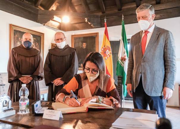 La delegación de la Cámara autonómica fue recibida por el alcalde del municipio, Carmelo Romero, y el Prior Superior del Convento Franciscano Santa María de la Rábida, Miguel Vallecillo, quienes les explicaron el valor histórico del convento en el descubrimiento de América.
