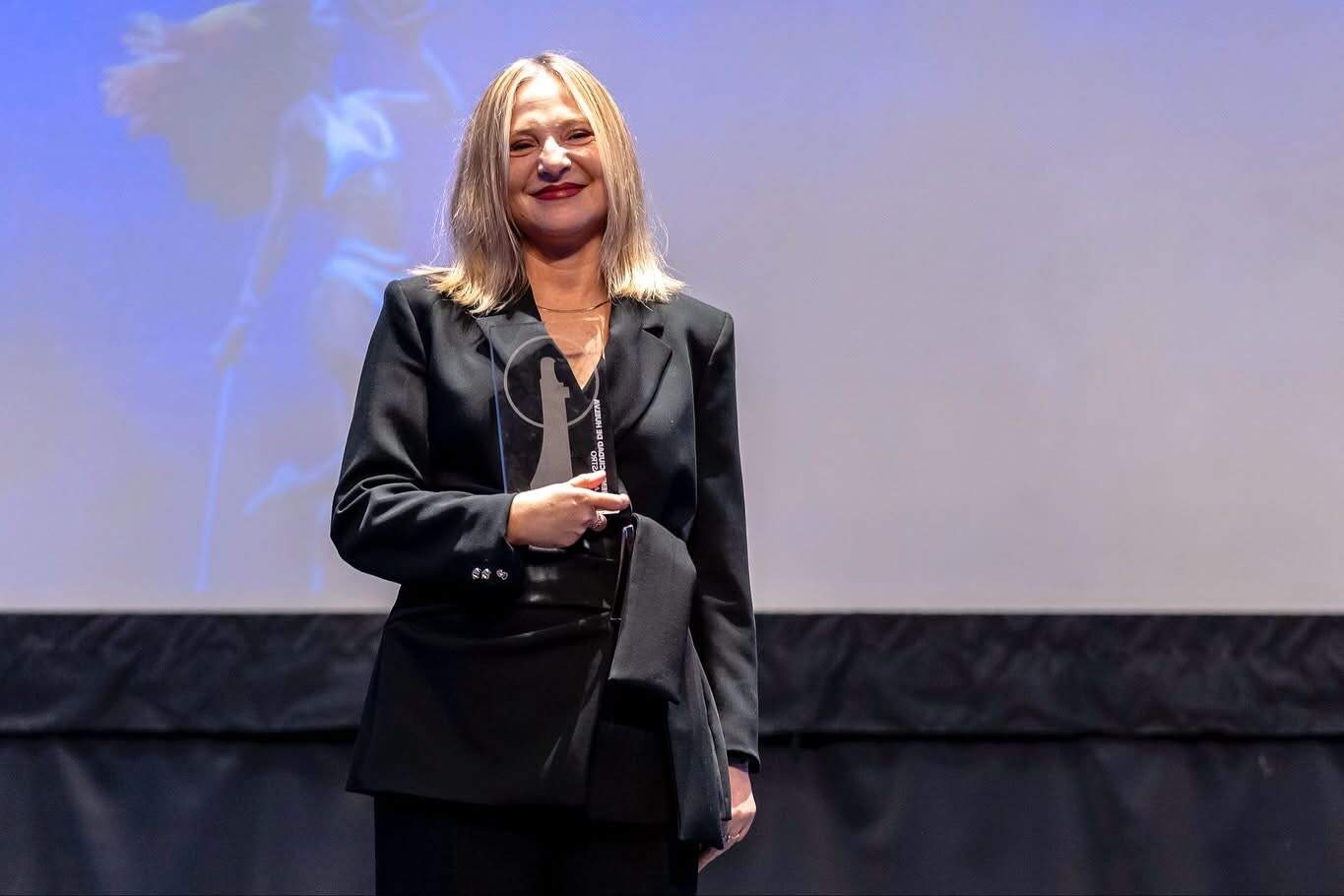 La actriz recibe el galardón emocionada en una gala marcada por el reconocimiento a su trayectoria.
