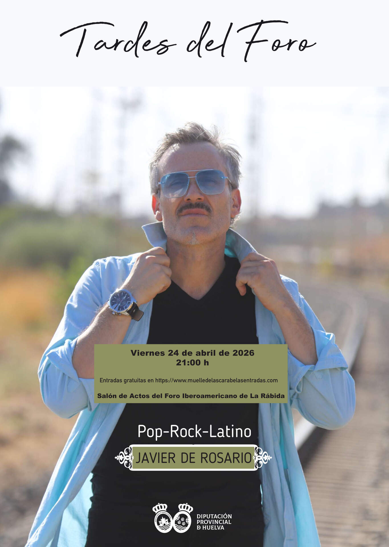 El ciclo musical Las Tardes del Foro, impulsado por la Diputación de Huelva, regresa este viernes con el concierto del artista onubense Javier de Rosario, que llevará su propuesta de pop rock latino al Salón de Actos del Foro Iberoamericano a partir de las 21:00 horas.
