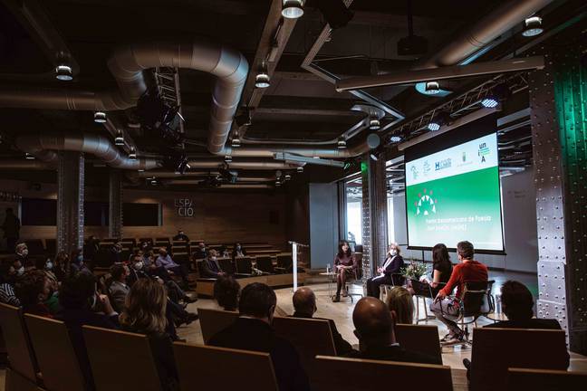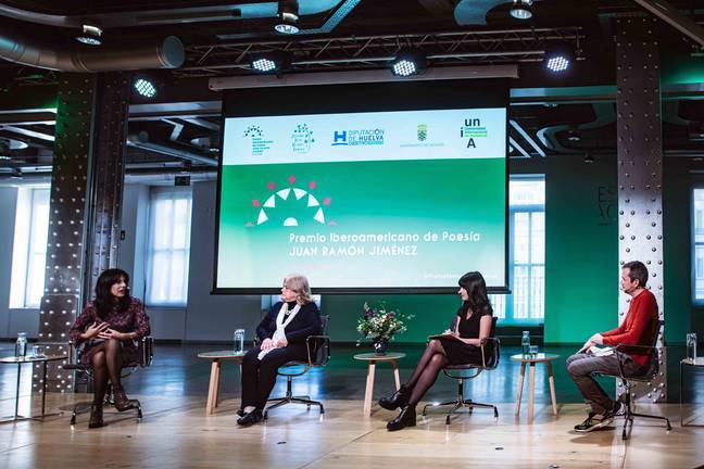 A continuación, en la Fundación Telefónica se ha presentado la XLII edición del Premio Iberoamericano de Poesía Juan Ramón Jiménez, en un acto presidido por el Vicepresidente de la Diputación Provincial de Huelva, Don Juan Antonio García; el Alcalde de Moguer y vicepresidente de la Fundación Zenobia-Juan Ramón Jiménez, D. Gustavo Cuéllar, y Dña. Carmen Hernández-Pinzón, sobrina nieta del nobel onubense; y presentado por la periodista y escritora Marta Fernández que ha estado acompañada por los poetas Raquel Lanseros e Ignacio Vleming.
