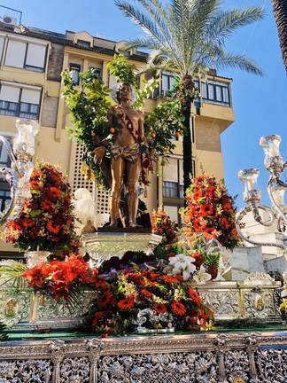 Con el racheo típico bajo el paso, los costaleros han llevado hasta la plaza de La Soledad a San Sebastián. Un lugar de reencuentro, y en el que el sol ha querido acompañar el instante. Allí sus antiguos vecinos, y el coro que han creado en su honor, recibían al Patrón para entregarle en forma de flores su pasión y devoción. Unas sevillanas muy sentidas ponían broche de oro a este momento que ha quedado entre los presentes como uno de los más bonitos del día.