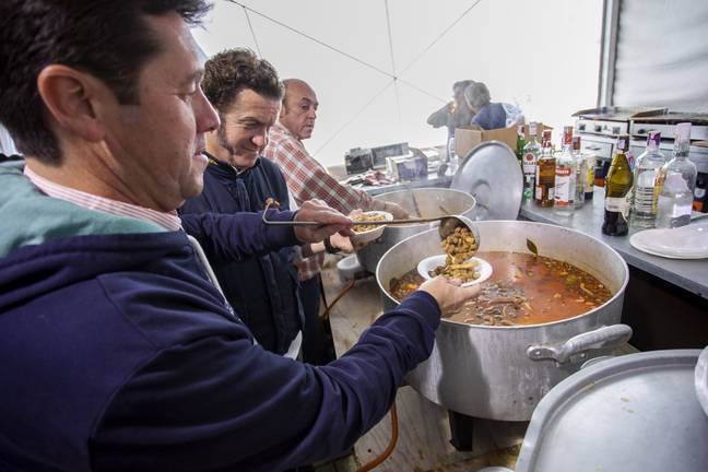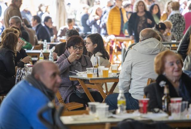 Comandando la elaboración de este exquisito plato se encontraba una vez más Pepe Ortiz, quien fuera hermano mayor en la romería del 94. Este año se da la paradoja que su hijo José Antonio, más conocido como ‘Nono’, veinticinco años después, será el encargado de conducir a la Concha Peregrina ante los pies de la Virgen del Rocío también como hermano mayor. Asimismo, los comensales han podido disfrutar de una sabrosa paella también y, cómo no, disfrutar de la música y hablar de todo lo que acontece en la hermandad, que se encuentra ya inmersa en los preparativos de la peregrinación extraordinaria que realizará el próximo mes.